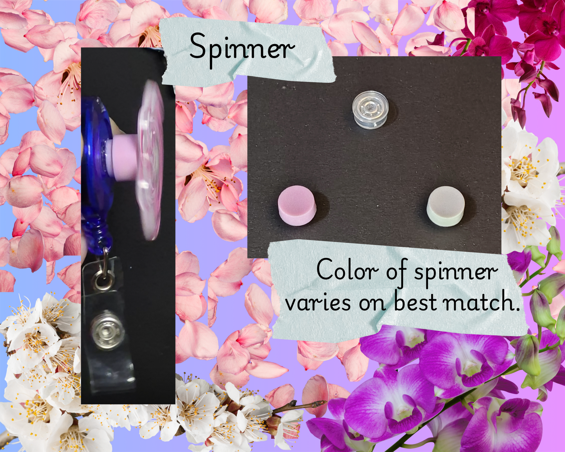 You can choose the acrylic flatback on its own to customize however you like, or upgrade it by adding a badge reel. Badge reel options include fixated, interchangeable, or—for a bit of extra fun—a fixated reel with a spinner.