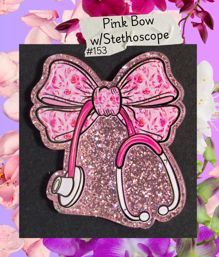 You can choose the acrylic flatback on its own to customize however you like, or upgrade it by adding a badge reel. Badge reel options include fixated, interchangeable, or—for a bit of extra fun—a fixated reel with a spinner.