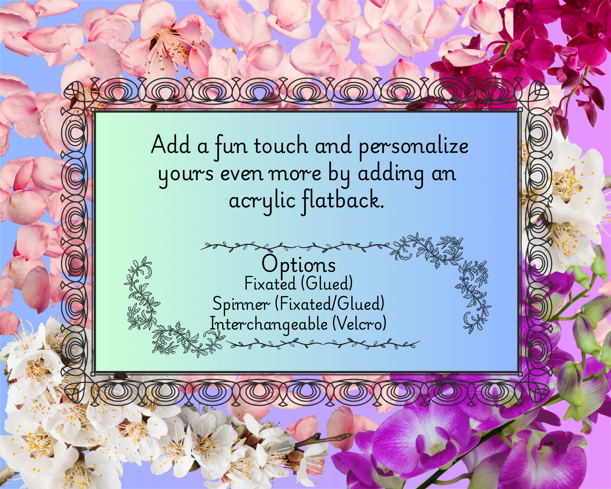 Simply choose the reel option you’d like from the selections below. Then visit our Acrylic Flatbacks section and add your favorite design to your cart by selecting “I would just like the Acrylic.”